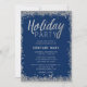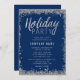 Silver Faux Glitter Blue Holiday Party Invitation