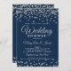 Elegant "Wedding Shower" design with Silver Faux Glitter Confetti Navy Blue design and custom text.