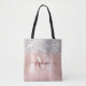 This chic tote bag features blush pink brushed metal background with sparkling silver Faux-Glitter border. Add your name and initial for a personal touch.