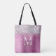 Silver Faux-Glitter Girly Glam Pink Personalized Tote Bag