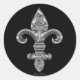 Elegant silver metallic like Fleur De Li on a black background, makes a beautiful sticker for the back of your envelopes.