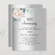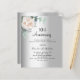 A faux silver looking background. Decorated with a white floral, peony flower and green watercolored eucalyptus greenery. Personalize and add your names and the details.