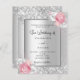 Silver floral blush pink white wedding invitation