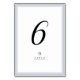 Elegant black and white minimalist wedding table number cards with faux silver floral and dusty blue borders, simple and stylish. Great for modern classic wedding, and formal wedding.
