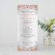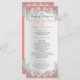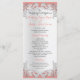 Custom silver floral lace like design with coral background or change colour as prefered. Customize with wedding details, ceremony information, menu or any text on this two sided card.
