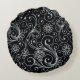 This elegant pillow features a pretty silver swirl and floral design placed on a dramatic black background. Very distinctive and attractive, and with an art nouveau flair. Both sides of the pillow have the same image.