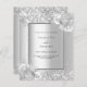 Faux silver looking background decorated with florals, flowers and faux silver glitter, sparkles. Personalize and add your names and party details. Black letters.