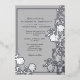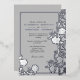 Celebrate your special day in style with our Silver Florals and Elegant Grey Foil Wedding Invitation. This stunning invitation features a sophisticated grey background adorned with a beautiful silver foil frame and border of large silver foil flowers and foliage, adding a touch of elegance to your event. Perfect for couples looking for a modern yet classic design, this invitation sets the tone for a chic and stylish wedding celebration. With its high-quality materials and attention to detail, this invitation is sure to impress your guests and make a lasting impression. Send out these gorgeous invitations and set the stage for an unforgettable wedding day full of love, joy, and happiness. Order yours today and make your wedding day even more special with our Silver Florals and Elegant Grey Foil Invitation.