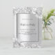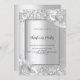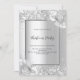 Faux silver looking background decorated with florals, flowers and faux silver glitter, sparkles. Personalize and add your party details. Black letters.