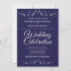 This beautiful wedding invitation features a simple yet elegant design of silver or grey text on a navy blue background with silver faux foil floral borders. Welcome your guests to share your special wedding celebration day with these gorgeous invitations. A wedding is a once in a lifetime celebration of love, friends and family. Make your nuptials truly memorable with these pretty and stylish invitations. This invite is fully customizable, so you can change the text to suit your situation and needs.