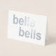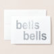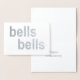 This beautiful card will make your favourite couple's anniversary shine! On the front, the words "bells bells" are printed in metallic shiny silver foil. Inside, the words "happy anniversary"--fully customizable with any text you prefer--appear in silver-tone colour. The words are all in simple, plain modern lettering, on a white background. Perfect for twenty-fifth wedding anniversaries (or any anniversary!), or customize the inside message with wedding congratulations.