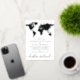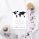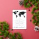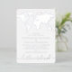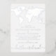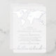 REAL Silver Foil World Map Destination Wedding or Travel Theme Reception Invitation card with elegant script and serif fonts, simple typography, and a modern and simple design with a navy blue background you can personalize with any fonts or background colours. Travel and Accommodations information can be printed on the back, which eliminates the need for additional insert cards.