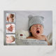 Carte Faire-part de naissance moderne avec un collage photo avec une grande photo d'arrière - plan et trois photos de carré sur la gauche. Les bordures autour des trois photos sur la gauche avec le nom du bébé et les statistiques de naissance sont en véritable feuille d'argent. Le dos a votre message personnalisé en bleu poussiéreux. Cette carte Faire-part de naissance simple mais élégante est une excellente façon de partager vos photos préférées de votre nouveau-né garçon.