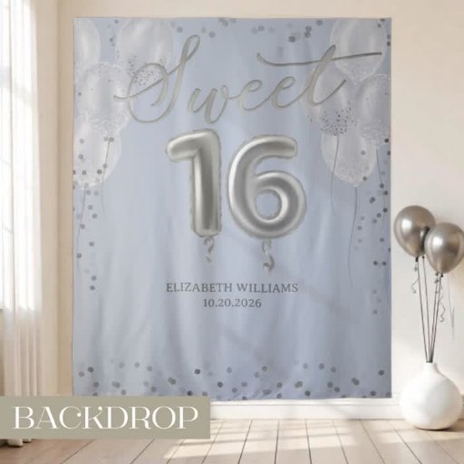 Dusty Blue Silver Foil Sweet 16 Bday BalloonsDesigned by CaMi Designs