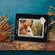 A pretty silver coloured frame holds your photograph on this personalized Silver Wedding Anniversary photo plaque. A silver heart is at the bottom right. The text, also in silver, is fully customizable, so you may make it say whatever you'd like. You can even remove the 25 Years and make it for any anniversary celebration, or even for a wedding photo. Everything is placed on a dramatic black background. Choose Customize it and use the arrow keys to move your photograph into the best position.