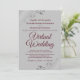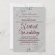 Just because you've been forced to move your wedding to a virtual ceremony, doesn't mean you can't send out beautiful invitations. This elegant invite features fancy burgundy coloured script lettering on a grey background with lacy floral filigree or curls and swirls in the corners. Perfect way to invite your friends and family to share in your special day, even if they can't be there in person.