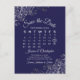 Silver Frills Navy Wedding Save the Date Calendar Announcement Postcard