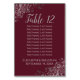 Silver Frills on Burgundy Wedding Seating Chart Table Number