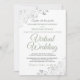Just because you've been forced to move your wedding to a virtual ceremony, doesn't mean you can't send out beautiful invitations. This elegant invite features fancy sage green and grey script lettering on a white background with lacy silver faux foil floral filigree or curls and swirls in the corners. Perfect way to invite your friends and family to share in your special day, even if they can't be there in person.
