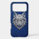 Silver Geometric Wolf Blue Snakeskin iPhone