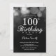 Silver Glitter 100th Birthday Invitation Card. Adult Birthday. Silver Glitter Bokeh Background. 16th 18th 21st 30th 40th 50th 60th 70th 80th 90th 100th. Any Age. For further customization, please click the "Customize it" button and use our design tool to modify this template.