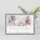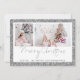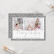 Silver Glitter 2 Photo Script Merry Christmas. A touch of sparkle with this faux glitter border design with coordinating faux silver glitter on the back. Simply replace the two sample photos with your own and personalise with your greeting and names at the bottom. Merry Christmas is in a stylish set script.