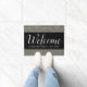 Welcome doormats with a classy silver glitter print . Personalize with family name and established year.