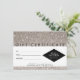 Coordinates with the Silver Glitter and Glamour Business Card Template and office supplies by 1201AM. A silver glittery background image provides a glamourous backdrop on this stylish gift certificate template. Your name or business name is elegantly styled in a faux silver trimmed nameplate for a modern logo. A stylish design motif for beauty salons, nail designers, makeup artists, cosmetologists, spas and more. © 1201AM CREATIVE