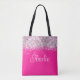 Silver Glitter and Hot Pink Monogram Tote Bag