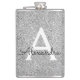 Silver Glitter and Sparkle Monogram Initial Hip Flask