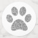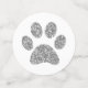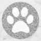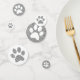 Silver and grey glitter pattern large table confetti (tablefetti) cat, dog, or animal footprints to sprinkle on tables at a cat or dog theme baby shower, pet birthday party or shelter fundraiser event. No puppy or kitten theme birthday for a little girl or boy, or adult who loves animals, is complete without added fun of sparkly looking paw prints on the tables.