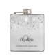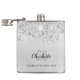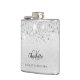 A faux silver metallic looking background with elegant faux glitter dust. Personalize and add her first name, monogram initials and full name. The first name is written in black with a modern hand lettered style script.