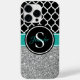 Silver Glitter Black and White Trellis Monogram Case-Mate iPhone Case