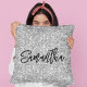 Silver Glitter Black Brush Script Throw Pillow