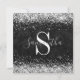 Faux sparkly silver glitter against a faux black leather graphic image.