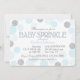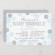 Silver glitter and baby blue scattered polka-dots modern baby sprinkle invitation card design.