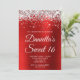 Silver Glitter Bright Red Foil Sweet 16 Invitation