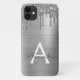 Silver Faux Foil Metallic Sparkle and Dripping Glitter Brushed Metal Monogram Name and Initial Phone. This makes the perfect sweet 16 birthday, wedding, bridal shower, anniversary, baby shower or bachelorette party gift for someone that loves glam luxury and chic styles.