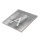 Silver Faux Foil Metallic Sparkle Glitter Brushed Metal Monogram Name and Initial Ceramic Tiles. This makes the perfect sweet 16 birthday, wedding, bridal shower, anniversary, baby shower or bachelorette party gift for someone that loves glam luxury and chic styles.