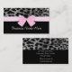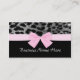 This is a trendy business card. It has black and silver glitter cheetah pattern on the top. There'a a pretty pink ribbon with a bow across the centre of the card. There's a black bottom where you personalize with business name.. Check out the many other products, designs and colours in our store.