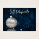 An elegant Christmas illustration featuring a silver Christmas bauble and white pearls on a dark blue bokeh background.