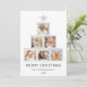 Simple and modern Christmas photo tree | Holiday flat card features 6 photos with a faux silver glitter star and square frames and a silver glitter pattern on the back.