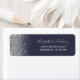 The left-hand edge of this elegant modern wedding return address label features a silver faux glitter design. The customizable text combines silver gray handwriting, copperplate and italic fonts on a dark navy blue background.