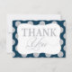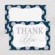 Silver glitter-look dots and navy blue background modern thank you card.