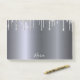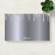 Decorated with faux silver glitter drip, paint drip look. Elegant faux silver background. Template for Your name in light grey written with a hand lettered style script.