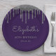 Silver Glitter Drip Purple 40th Birthday Party Paper Plate