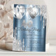 Silver Glitter Drips Balloons Blue Metallic 40th Invitation