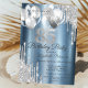 Silver Glitter Drips Balloons Blue Metallic 85th Invitation