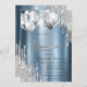 Silver Glitter Drips Balloons Blue Quinceanera Invitation