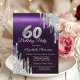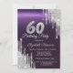 Silver Glitter Drips Dark Purple 60th Birthday Invitation